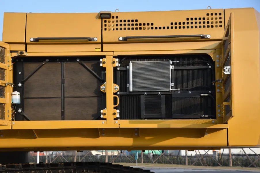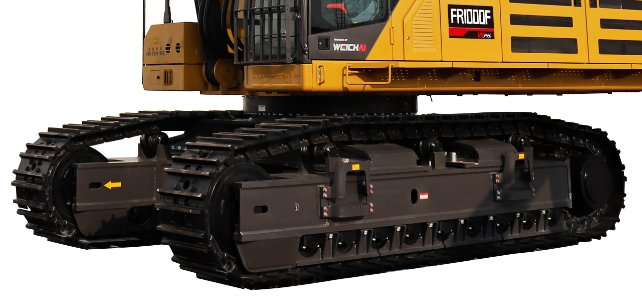 采用分體式礦山專用底盤,雙支撐結構托鏈輪;100噸級四輪一帶,雙排滾珠回轉支撐;全新設計礦山加強型回轉平臺,優(yōu)化主梁及配重安裝結構,承載能力大幅提升;采用強度更高的D形截面邊梁,可有效抵抗外來撞擊。