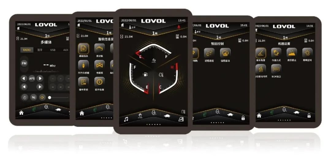 雷沃智能操作系統(tǒng)可實現動力系統(tǒng)管理、智能交互、工況自動識別、輔助操作等功能;10.1寸高清大屏,集成收音機、空調操作,智能高效。